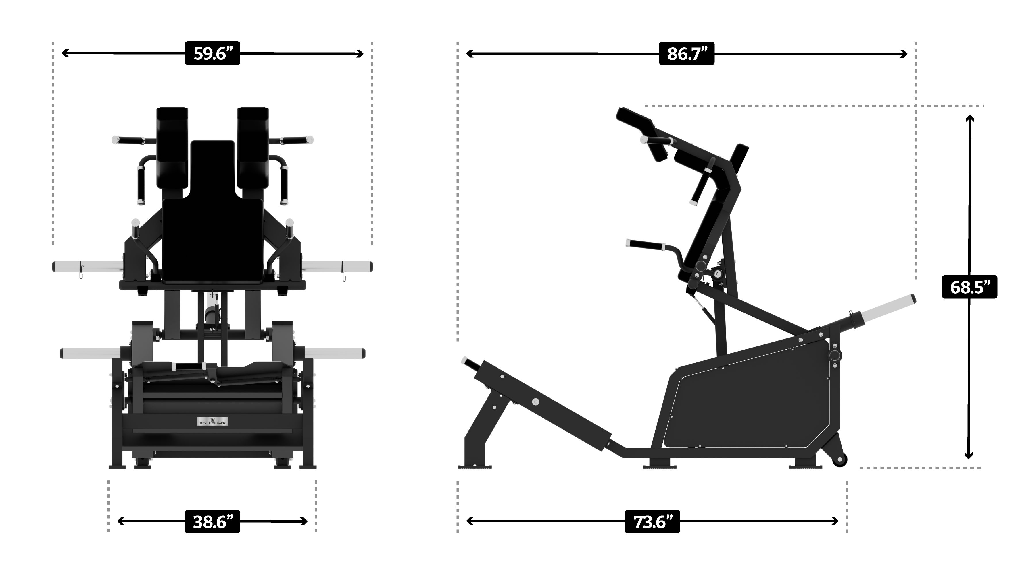 The Temple of Gainz Plate-Loaded Adjustable Power Squat / V Squat / Hack Squat Machine is a two-in-one lower body building powerhouse of a machine.