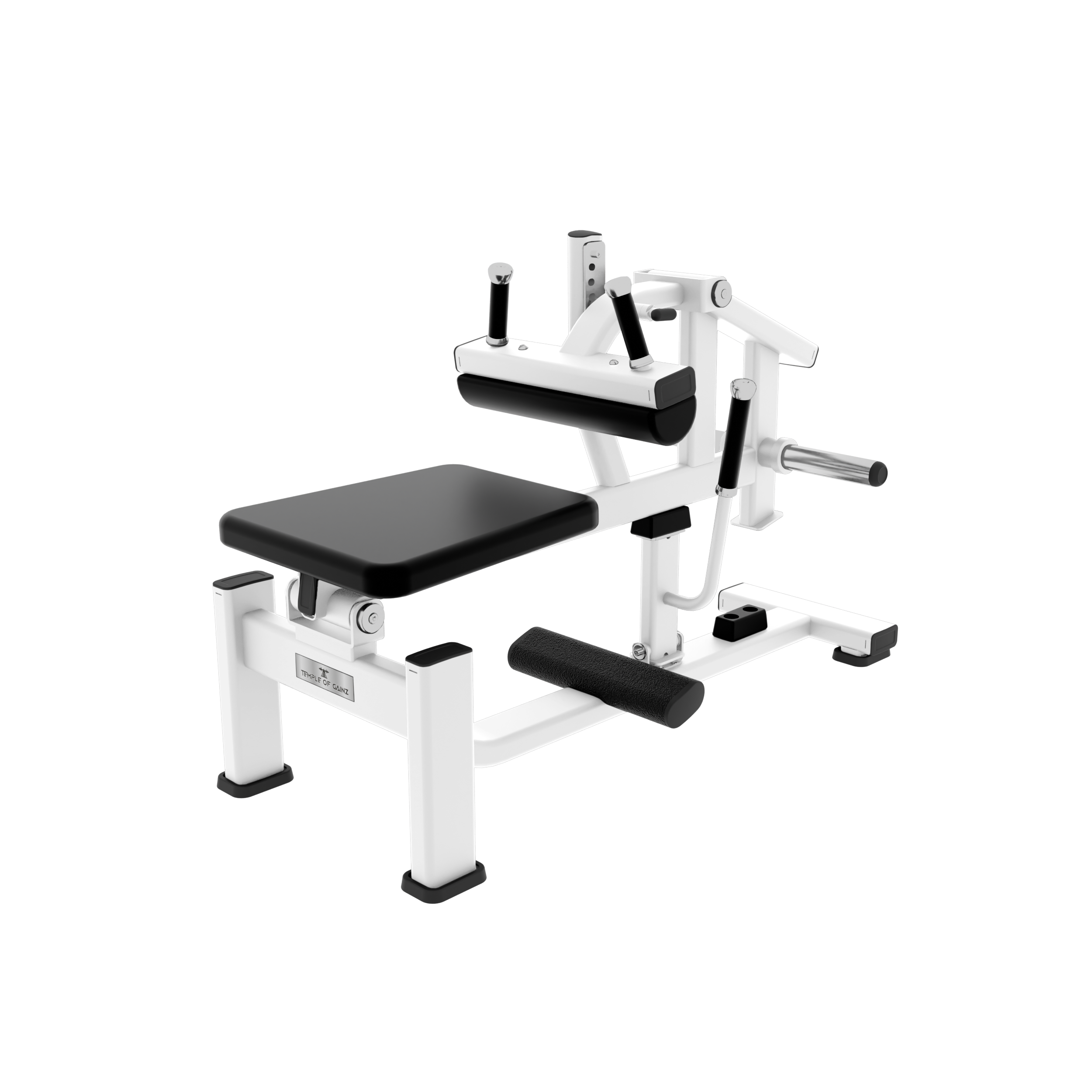 The Temple of Gainz Plate-Loaded Seated Calf Raise Machine is designed to train the gastrocnemius and soleus muscles that make up the calf muscles.