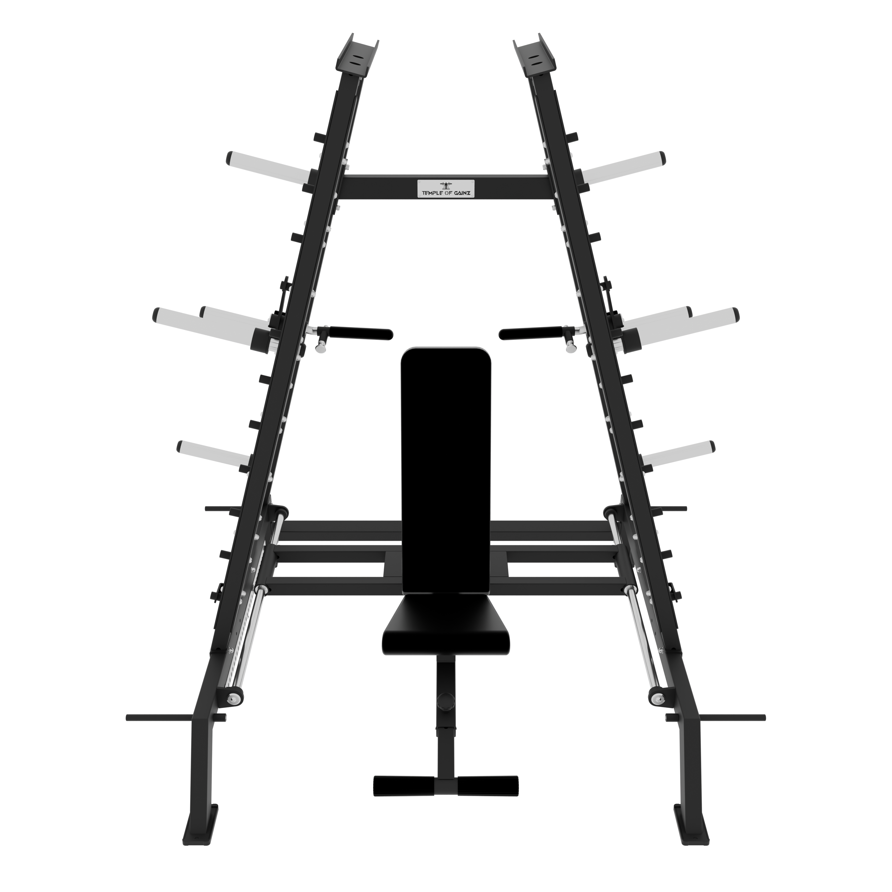 The Converging Smith Bench Press Version 3 delivers the most complete chest and shoulder pressing platform ever engineered. It blends the stability and power of a Smith machine with the biomechanics and freedom of independent converging arms.